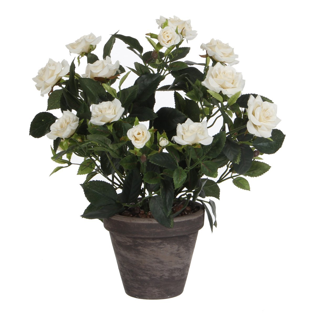 Rozenstruik Kunstplant in Bloempot Stan – H33 x Ø25 cm – Wit