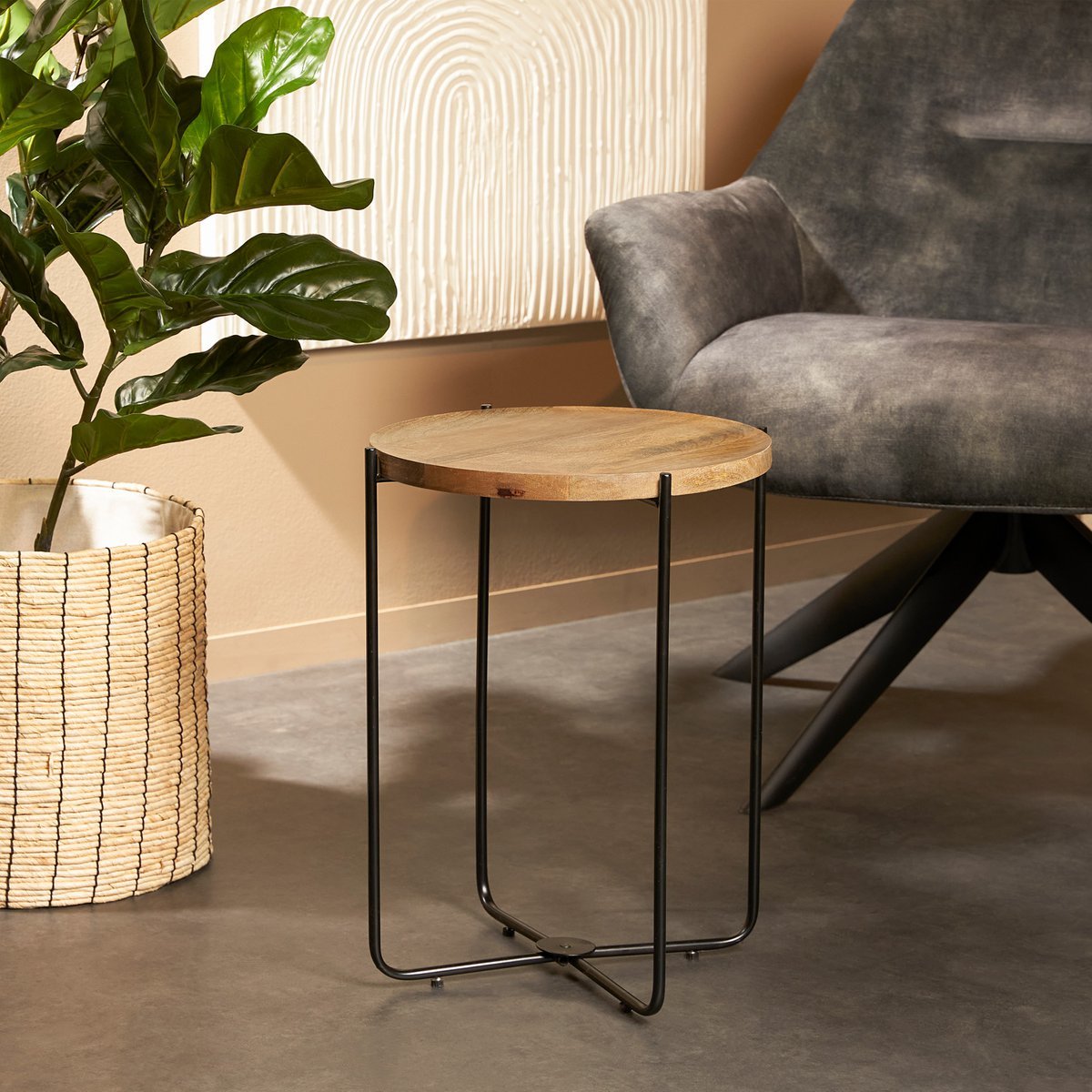 Voor deze moderne Armando bijzettafel van het merk Mica Decorations is in elk huis wel een plekje te vinden. Het ronde blad is van FSC®-gecertificeerd mangohout, het zwarte onderstel is van metaal en geeft het tafeltje een moderne uitstraling. Zet hem naast de stoel of bank voor een drankje, in de hoek met een mooie plant of combineer hem met andere tafeltjes. Wat je er ook mee doet, dit tafeltje staat super in elk interieur! De afmetingen zijn H45 x Ø35,5 cm.