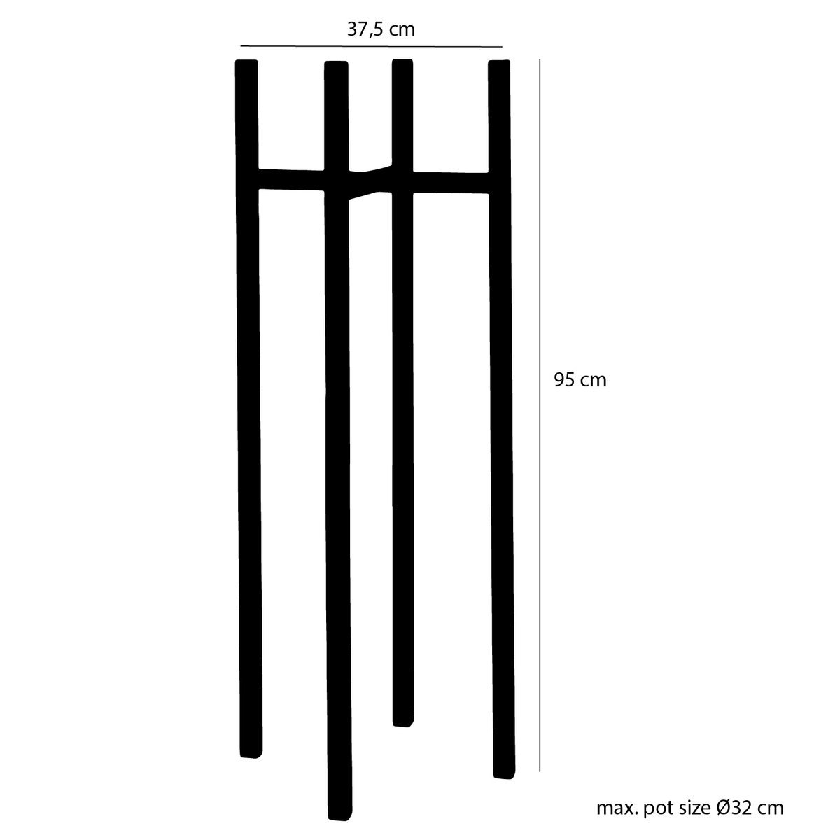 Ascot Plantenstandaard XL – L38 x B38 x H95 cm – Metaal – Zwart is een veelzijdige keuze die moeiteloos combineert met uiteenlopende stijlen.