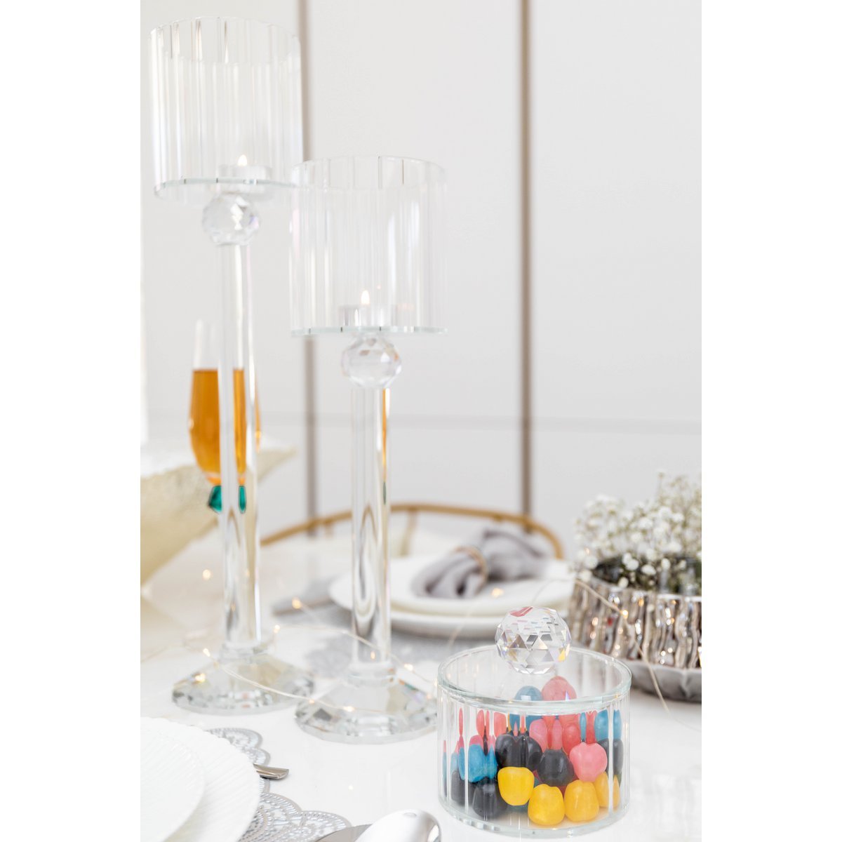 Gemaakt met kwaliteitsmaterialen en onberispelijke afwerkingen, zijn onze hoge kandelaars ontworpen om zich aan te passen aan alle decoratiestijlen, hetzij modern of klassiek. Of het nu gaat om een speciale gelegenheid of om uw dagelijkse leven te verfraaien, deze kandelaars bieden een ongeëvenaarde charme en een serene sfeer met elke kamer.