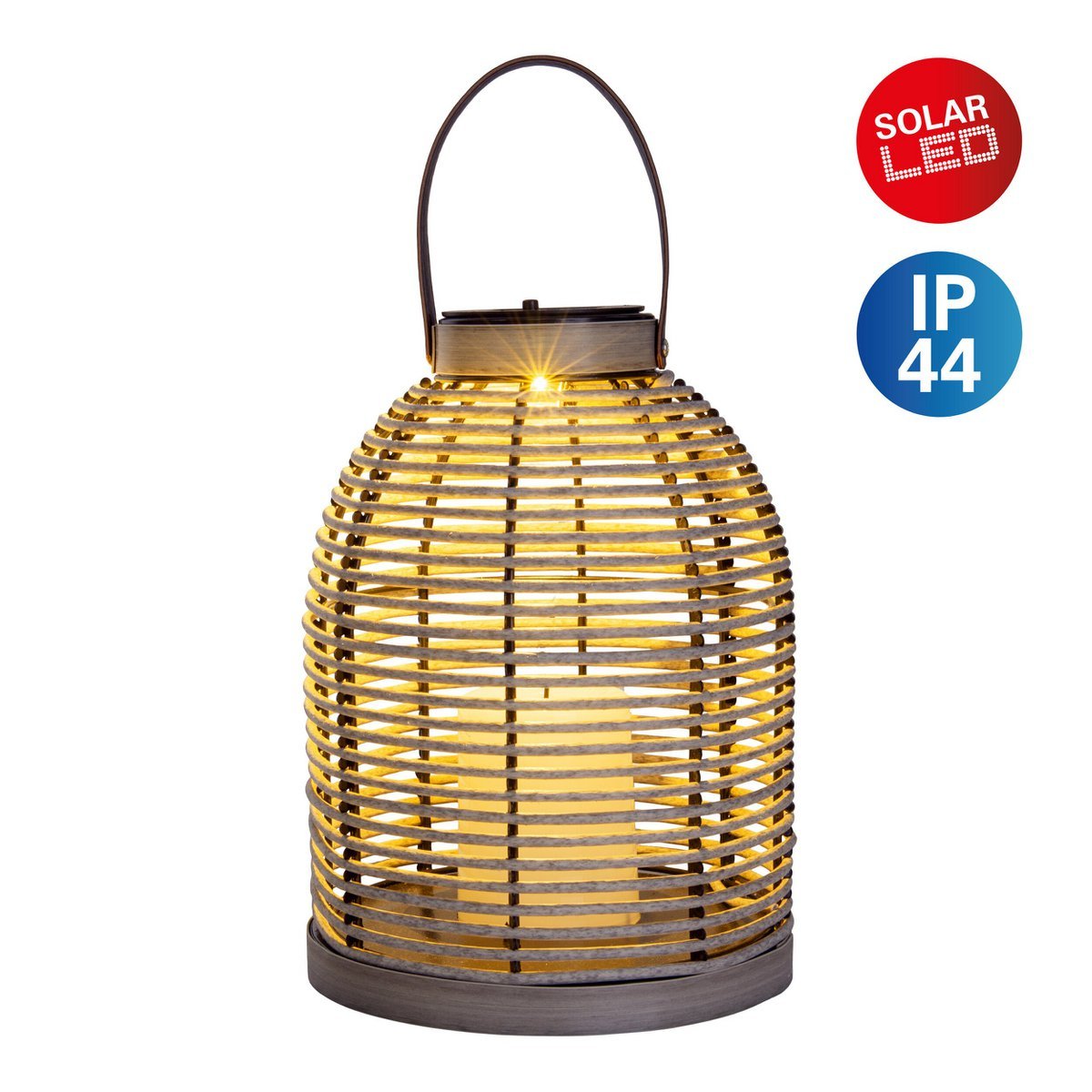 Het LED -zonne -licht “Korbinian” ziet er heel natuurlijk en gezellig uit en is nog steeds erg robuust en weerbestendig vanwege het geselecteerde materiaal. Het bestaat uit een metalen frame, met de hand verzameld met een koord gemaakt van plastic dat eruit ziet alsof het van een natuurlijk materiaal was gemaakt. Vanwege het grote vloeroppervlak is de lantaarn veilig en stabiel. Geniet van het natuurlijke, warm, diffunderen door het veter, licht met een glas wijn op uw terras of in het meest afgelegen deel van de tuin.